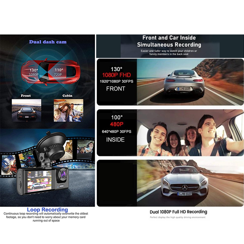 FHD 1080P Dash camera, Dual Camera Lens (Front + Inside), 2 inch display Car Recorder_Black