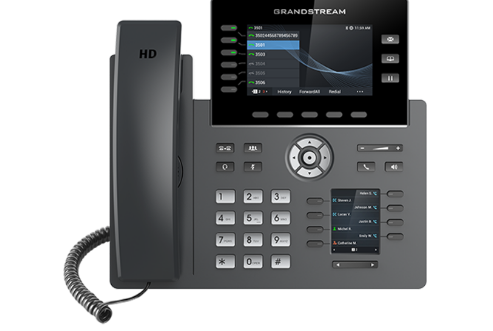The new generation of Grandstream GRP2616 High End IP Phones for business are expandable with sidecar modules, and include WiFi wireless networking capability. These Business Class Carrier Grade IP Phones also BlueTooth device connection. They sport a large 4.3″ large full colour LCD screen for a quick view of calls, extension users, or speed dial and other programmable dual colour LED indicator 10 button key functions. A 2.4 inch secondary display screen for cloud provisioning and centralized management.