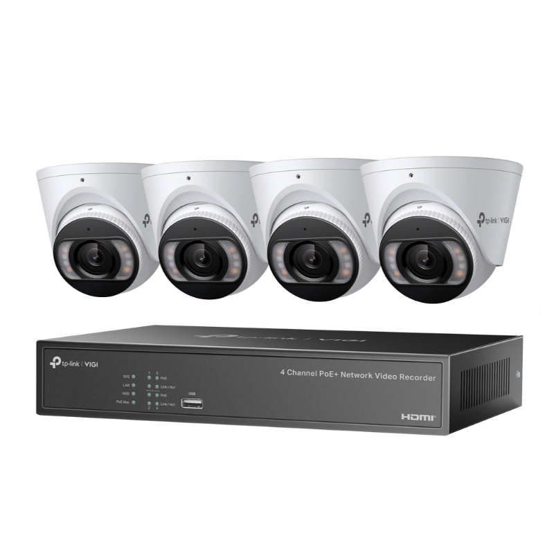 TP-LINK VIGI NK4P-T4425-2T 4pcs 4MP Full-Color Turret IPC & 4 Channel PoE+ NVR KIT with 2TB HDD installed